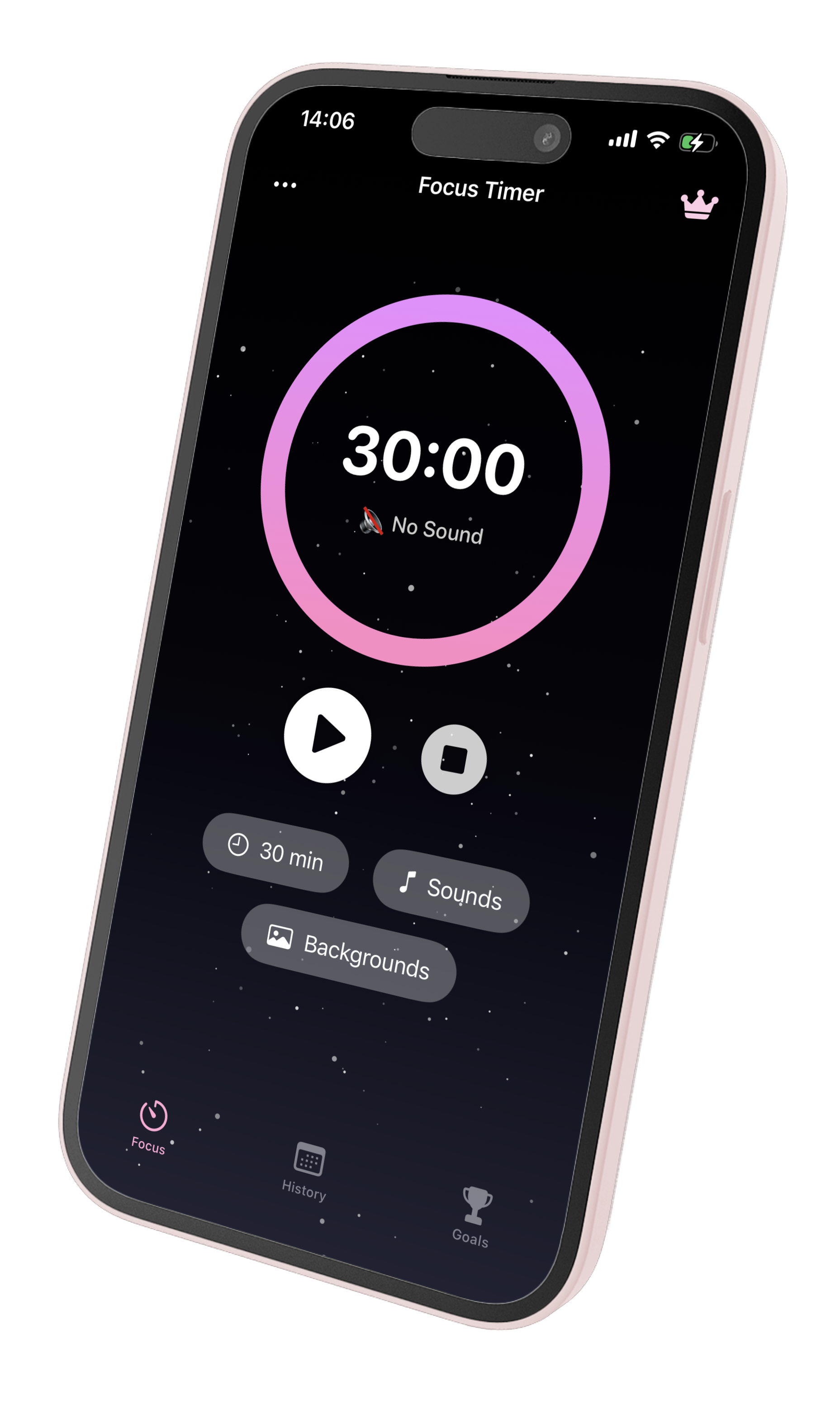 Beat distractions and build laser focus. Track your progress, set goals, and stay in the zone with ambient sounds and beautiful cosmic backgrounds. Turn scattered attention into deep work sessions that actually get things done.